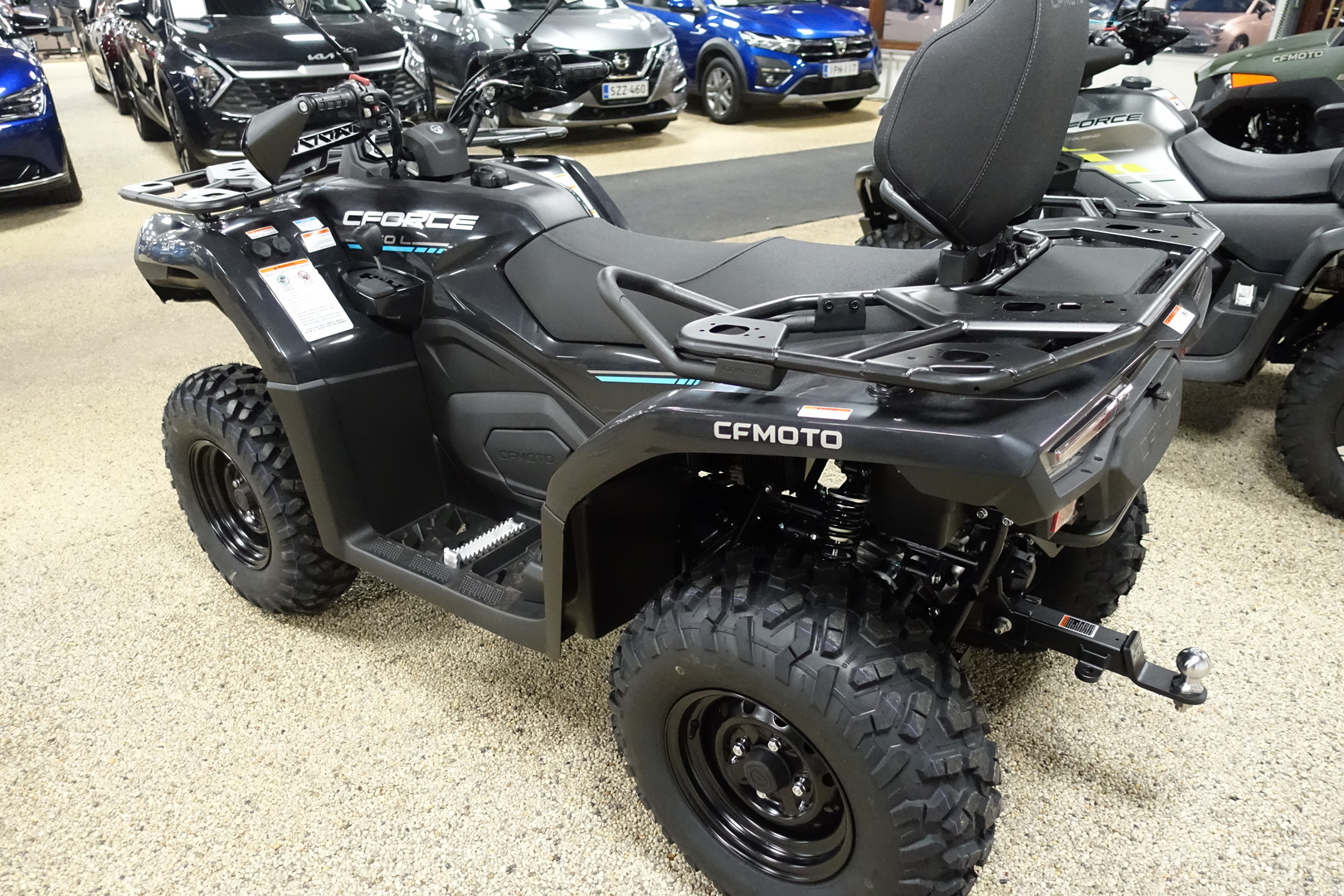 Mönkijän vakiovarusteena tulevat E-tyyppihyväksytty vinssi ja vetokuula, joista on hyötyä monenlaisissa töissä. Uusi CFORCE 450 -traktorimönkijä on saatavilla lyhyenä ja pitkänä versiona Hunter Green -värissä.